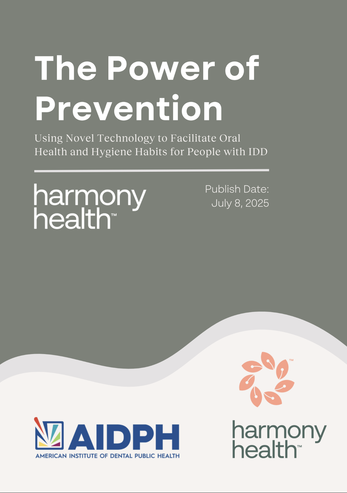 Suggested Citation: Harmony Health and The American Institute of Dental Public Health. The Power of Prevention: Using Novel Technology to Facilitate Oral Health and Hygiene Habits for People with IDD. Chicago, IL: July 2025. Copyright ©2025 The American Institute of Dental Public Health and Harmony Health. https://doi.org/10.58677/GYCH8489